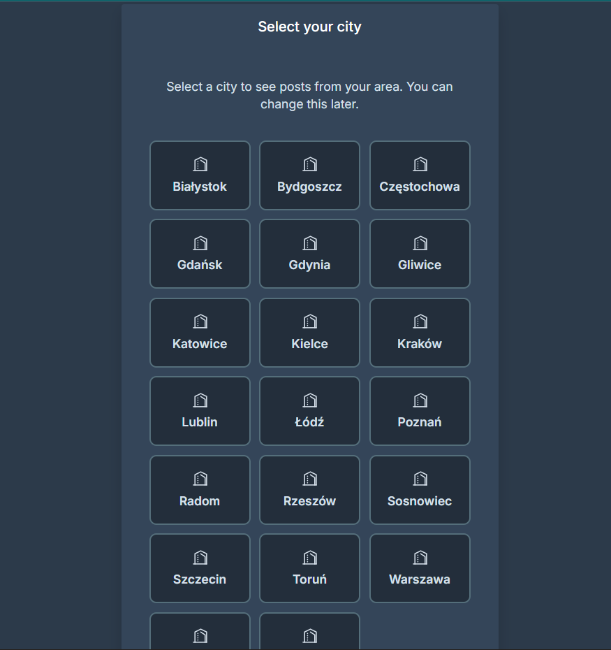 City Categories (Posts displayed based on selected city)